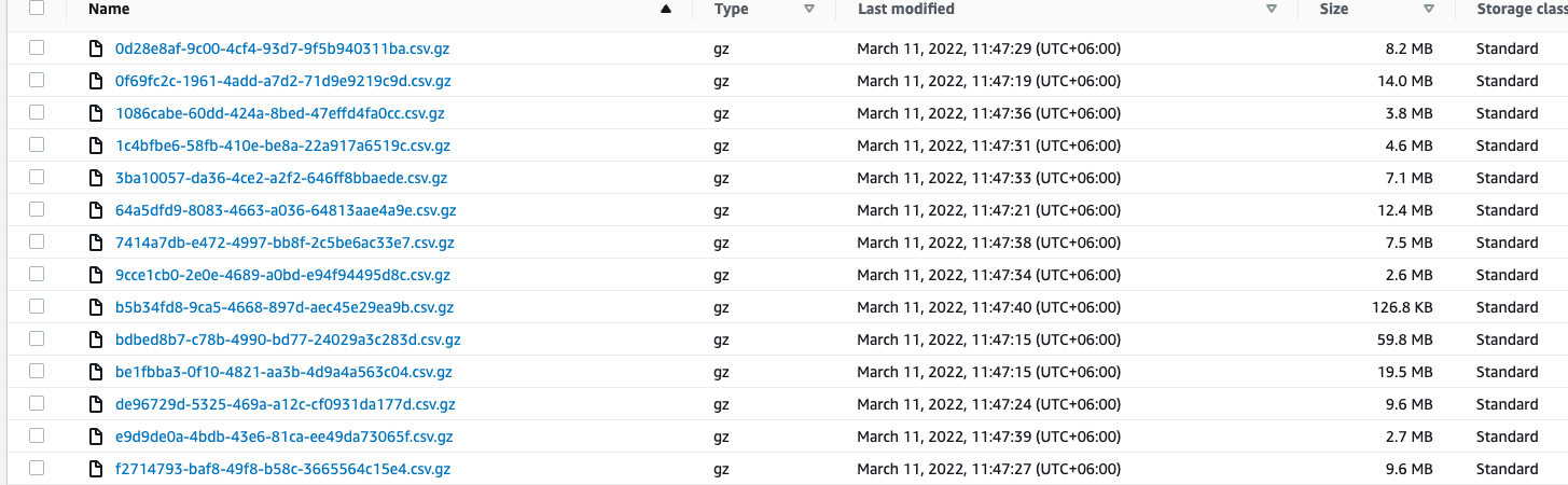 Inventory configuration of a bucket helps to create a list of all files in the bucket, but we need to sort out only Archived files. We created several CSV files with the list of files to be restored and uploaded them to S3